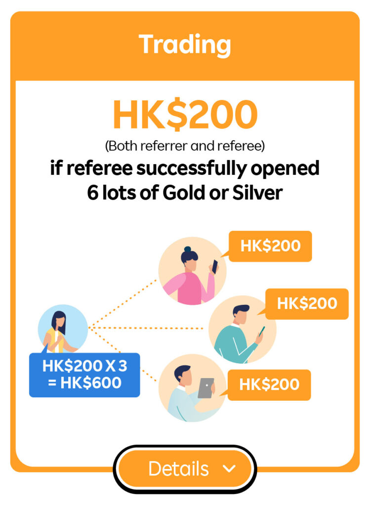6. For the Referrer and Referee to receive HK$200 cash reward each, the Referee must open at least 600 ounces of Gold or 30,000 ounces of Silver before the end of next month of the account opening month of the Referee.
