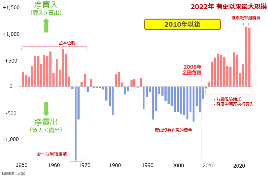 在全球分化的背景下,中央銀行以先前提到的動機為基礎,自2010年以來整體上一直保持買入。世界的分裂、民主主義陷入困境、以及因世界分裂和民主困境而起的戰爭,對他們來說,都是構成增加外匯儲備中黃金持有量的強烈動機。