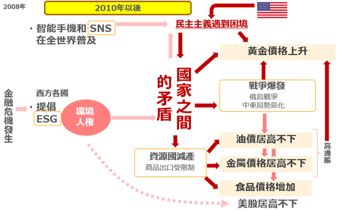 國家間矛盾深化的擔憂,增加了中長期視角下中央銀行增持黃金的預期。此外,對美國民主停滯的懷疑增加了超長期視角下的隱性風險,使得不安情緒和高通脹長期存在的可能性更高。